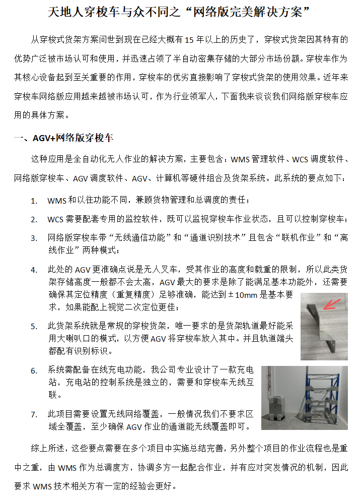 天地人穿梭車與眾不同系列之“網(wǎng)絡版完美解決方案”