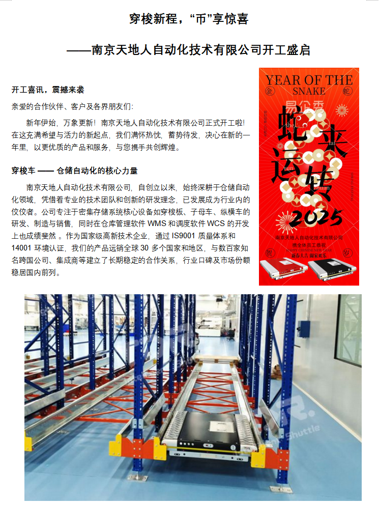 穿梭新程,“幣”享驚喜 ——南京天地人自動化技術(shù)有限公司開工盛啟